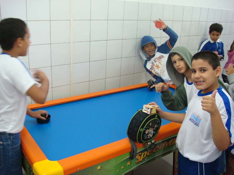O reencontro com os amigos, o intervalo entre as aulas, o companheirismo dos funcionários, o investimento em materiais, tudo isso proporciona comodidade e diversão ao aluno. Assim, a escola cada vez mais investe e aposta em um ambiente saudável para o crescimento dos nossos filhos adotivos, os alunos. Estes, por sua vez, aprendem que a escola não é só um lugar de aprendizado, mas também um lugar de diversão e socialização. Pensando nisso, o Colégio desenvolve o Projeto Reconstruindo o Recreio que consiste em evitar acidentes e/ou desentendimentos entre os meninos do ensino fundamental menor, que costumam extravasar suas energias através de brincadeiras que colocam em risco sua integridade física e psicológica. O projeto faz com que essas brincadeiras sejam feitas de maneira supervisionada e organizada entre os alunos do 2º ao 5º ano/Ens. Fundamental Menor que brincam de dominó, basquete, pebolim o famoso totó, entre outros. Este ano, a fim de inovar e surpreender nossos alunos, o colégio investiu em uma mesa de aero hockey, que mostra quanta interação e diversão pode haver no colégio. Dessa forma, cada vez mais eles têm motivos para gostar da escola que deixa de ser somente escola e se torna um lar aconchegante. É o que o Colégio Módulo procura oferecer aos seus alunos.