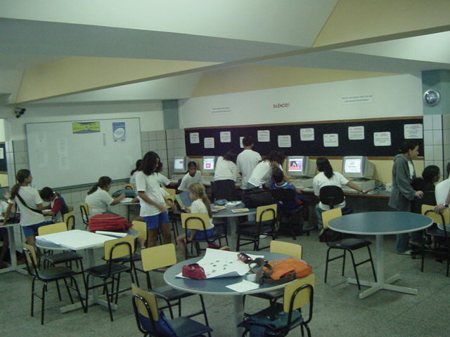 Alunos do Módulo aproveitam o intervalo para pesquisar na biblioteca do colégio.